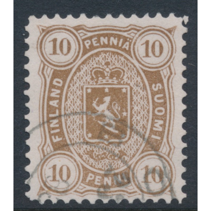 FINLAND / SUOMI 1882 10Pen yellowish olive-brown Coat of Arms, perf. 12½:12½, used – no thins, tears or bends. Facit Cat. # 15SC²c Michel Cat. # 15Bya