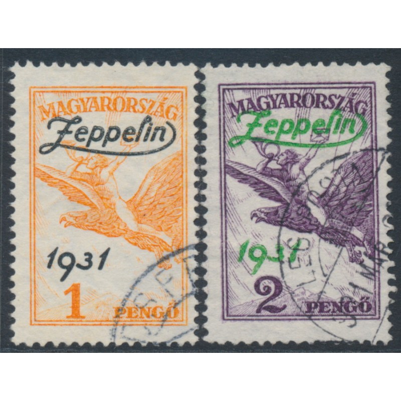 HUNGARY - 1931 1P orange & 2P violet Turul airmail o/p Zeppelin, used – Michel # 478-479