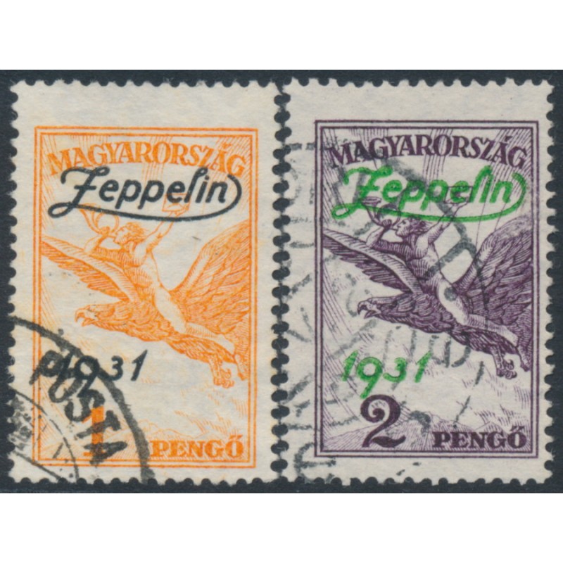 HUNGARY - 1931 1P orange & 2P violet Turul airmail o/p Zeppelin, used – Michel # 478-479