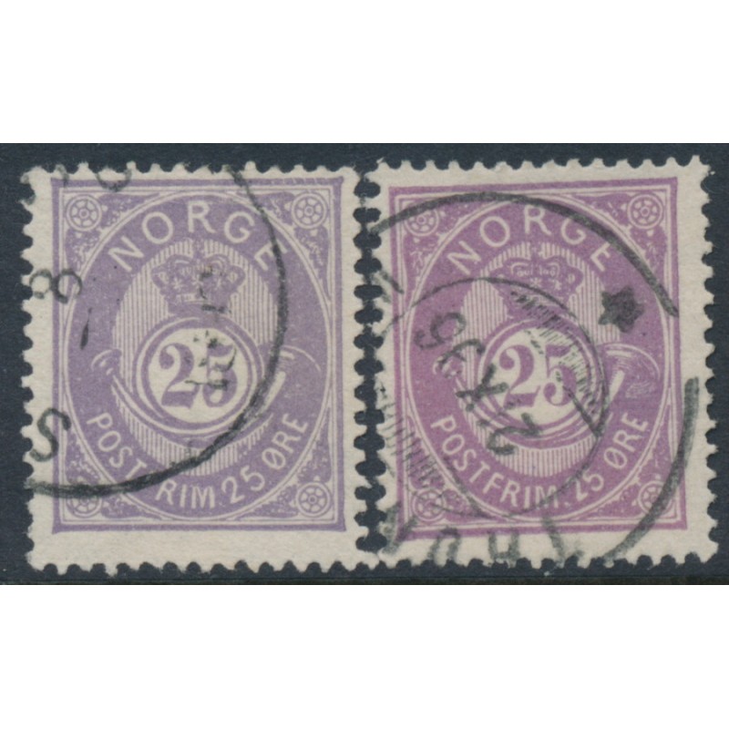 NORWAY / NORGE / NOREG 1888 25øre blue-violet & violet Posthorns (unshaded, picture height = 20mm), used – no thins, tears or bends. Facit Cat. # 55 Michel Cat. # 47