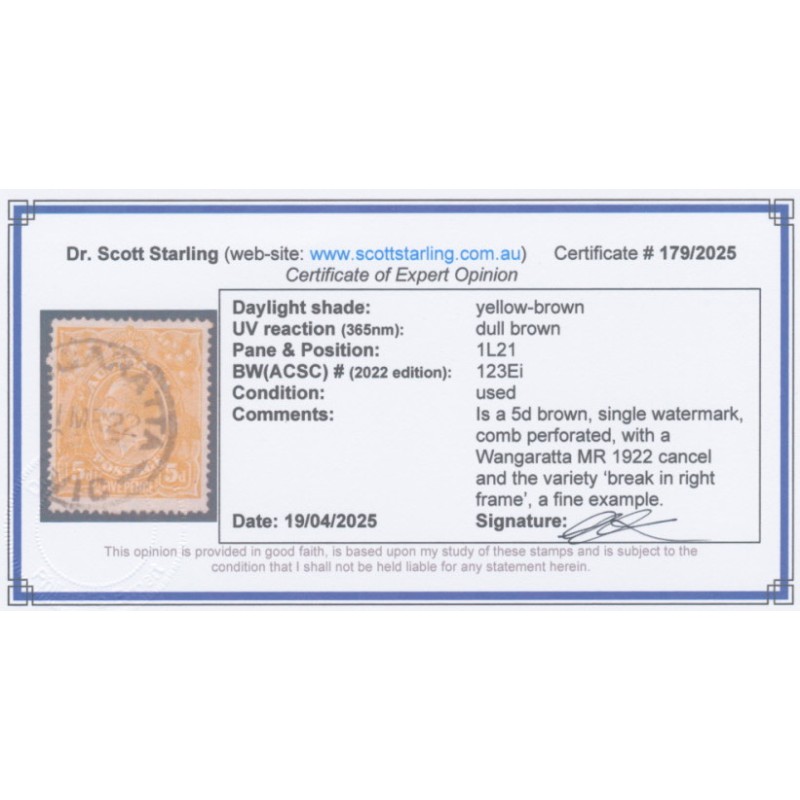 ![AUSTRALIA - 1917 5d brown KGV, 'break in right frame' [1L21], used – ACSC # 123Ei AUSTRALIA - 1917 5d brown KGV, 'break in right frame' [1L21], used – ACSC # 123Ei](https://www.scottstarling.com.au/image/cache/catalog/KGVGeneral/25270a-74x74.jpg)
