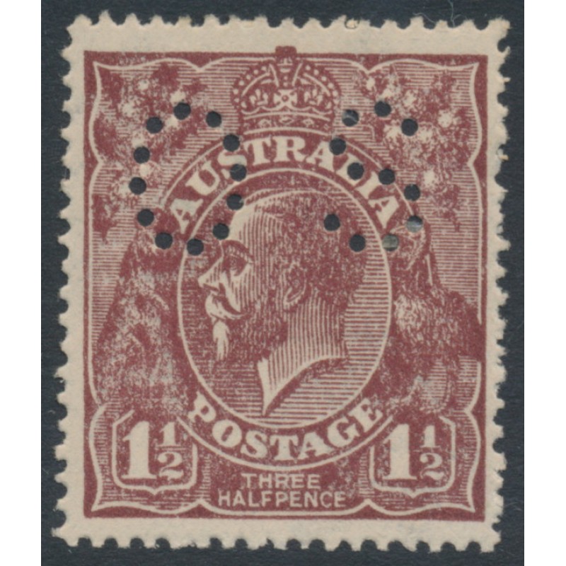 AUSTRALIA - 1919 1½d brown KGV, LM watermark, perf. OS, MH – ACSC # 86Bba