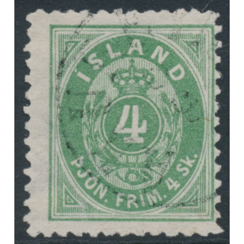 ICELAND - 1873 4Sk green Numeral Official, postally used – Facit # TJ3