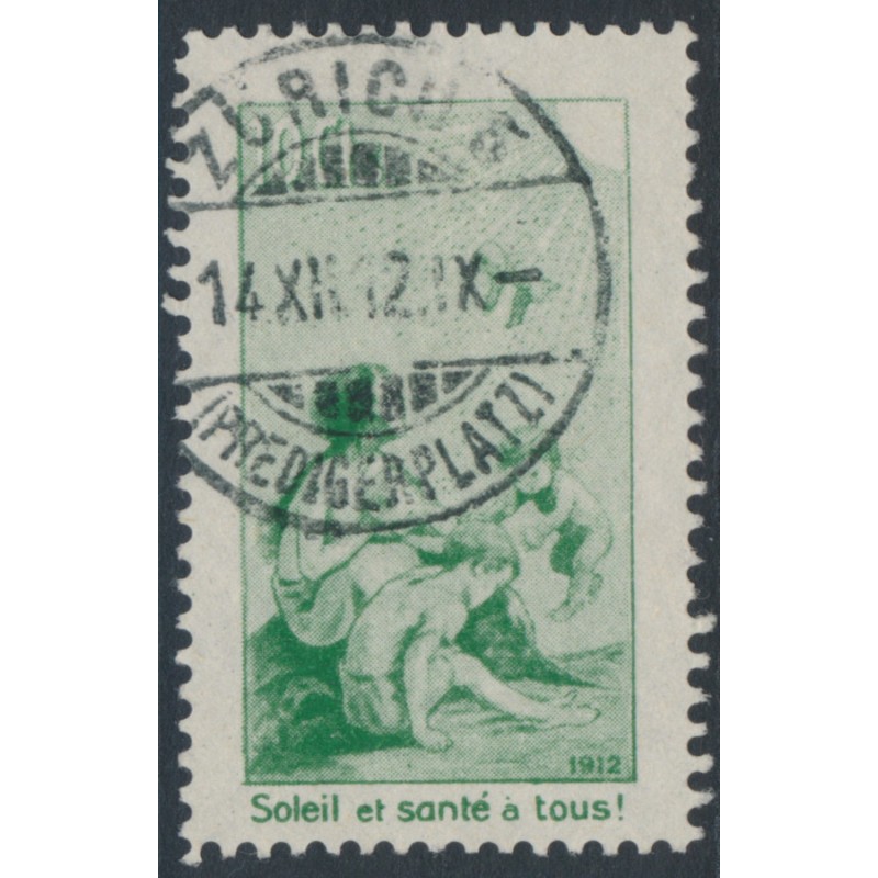 1912 10cts green Pro Juventute, French text, used – has a ZÜRICH 14 XII 1912 cancel (= first day of issue), no thins, tears or bends. Has a Marchand photo-certificate.