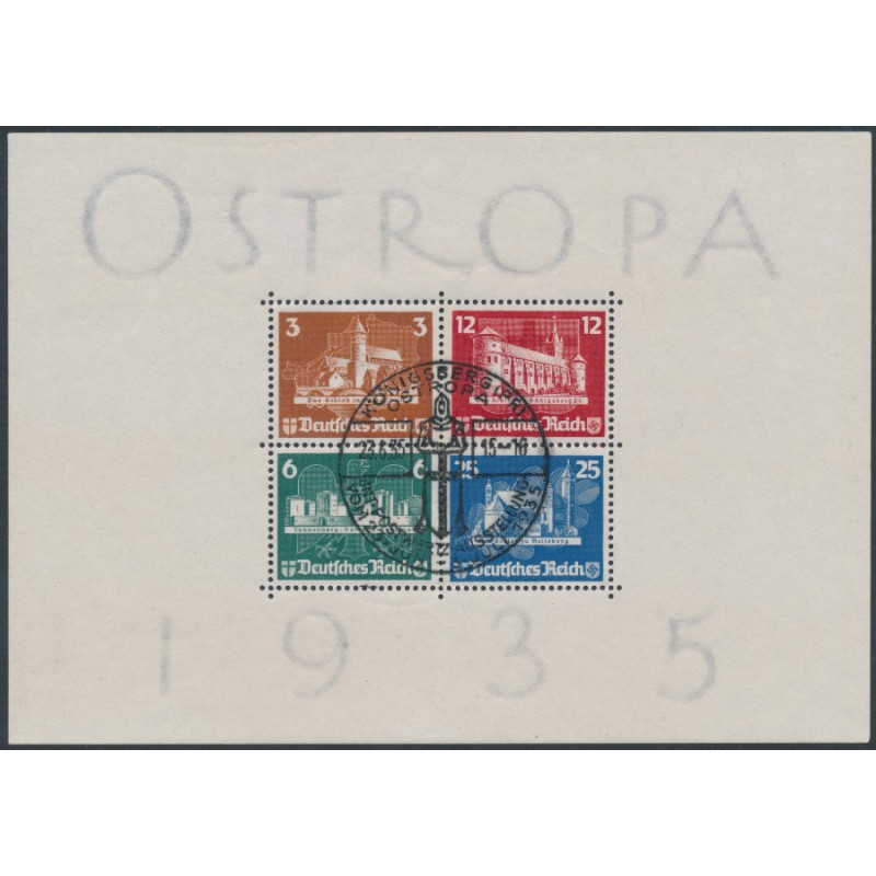 GERMANY / DEUTSCHES REICH 1935 Eastern European Stamp Exhibition (OSTROPA) S/S, used – no thins, tears or bends. Michel Cat. # Block 3 Scott Cat. # B68