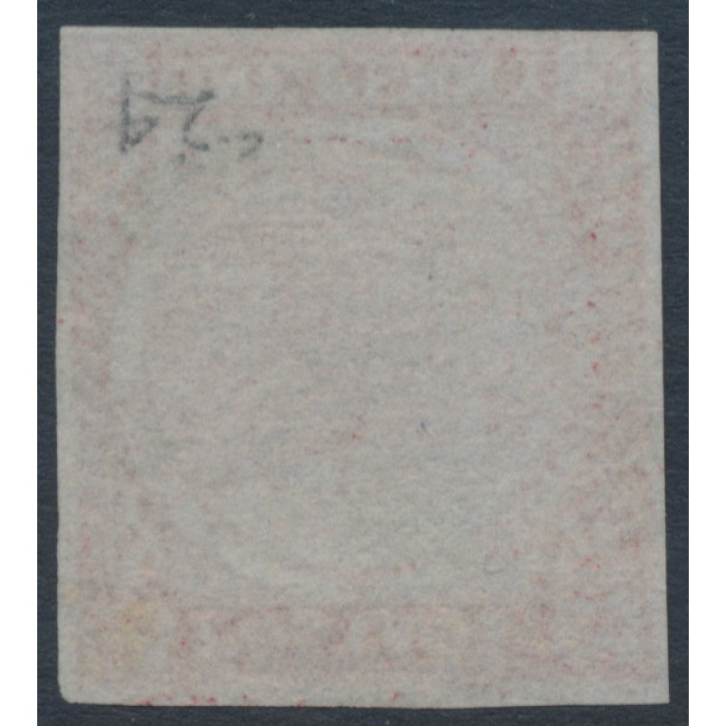 AUSTRALIA / NEW SOUTH WALES / N.S.W. 1850 1d crimson-lake Sydney Views, plate I (re-engraved), imperforate on bluish paper, used – no thins, tears or bends. SG Cat. # 9
