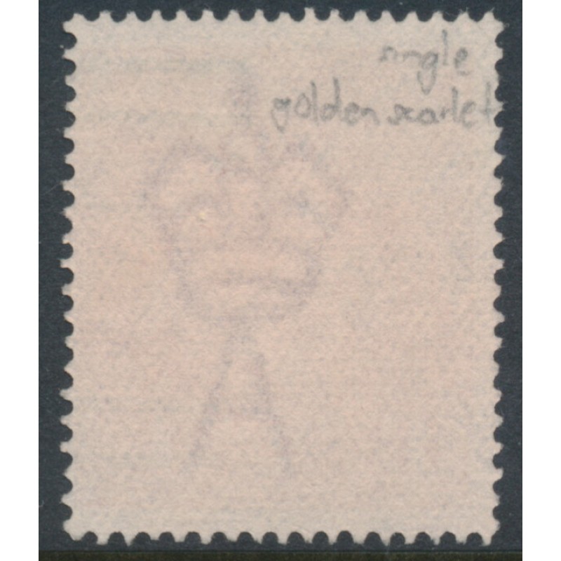 This is the only example of this shade that I have seen in single watermark. It has the distinctive golden sheen and strong fluorescent red UV reaction of the ‘golden scarlet’ shade that is common in the later 1½d and 2d values but is unrecorded in the single watermark printings.