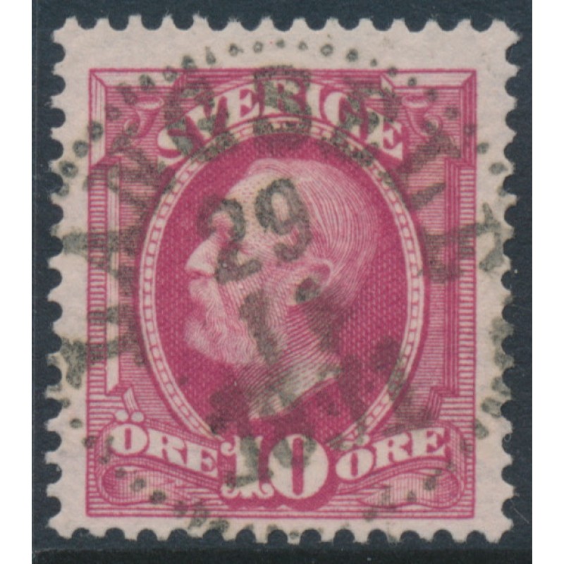 SWEDEN - 1891 10öre carmine Oscar II, portions of two crown watermarks, used – Facit # 54avm²